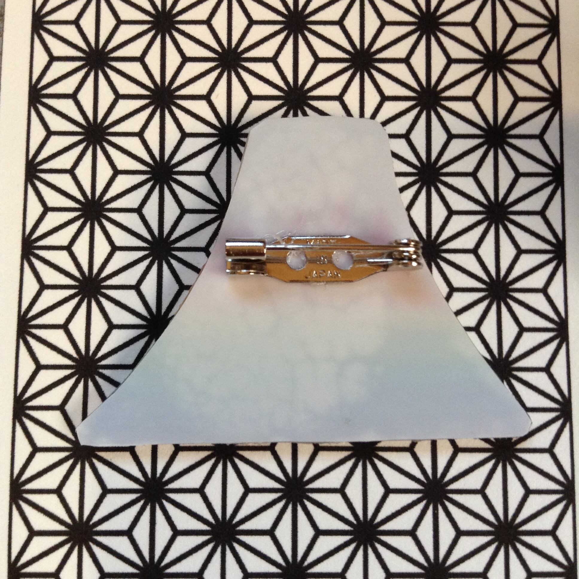 プラ板で作成された富士山レインボーブローチで、オリジナル商品です。